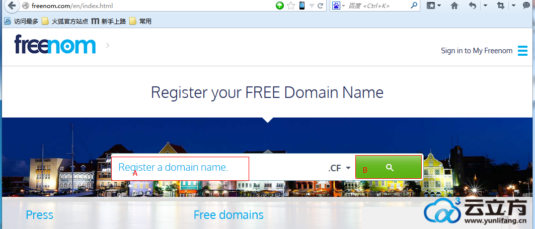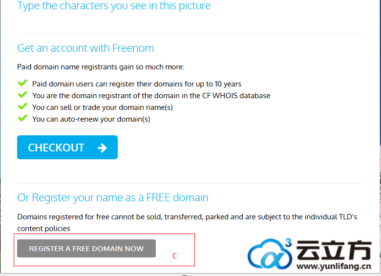英文网站,看着是有点麽不着头脑,不过不要紧的,我们是图文教程,如果看不懂英文直接看我们教程和图片对应标注的位置,相信大家注册免费.CF域名还是没有难度的哦,