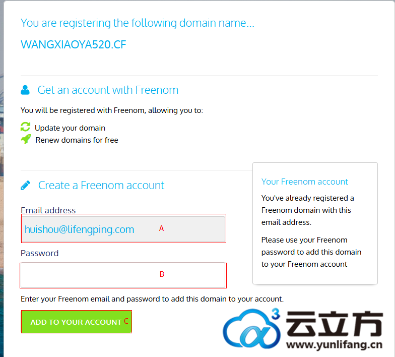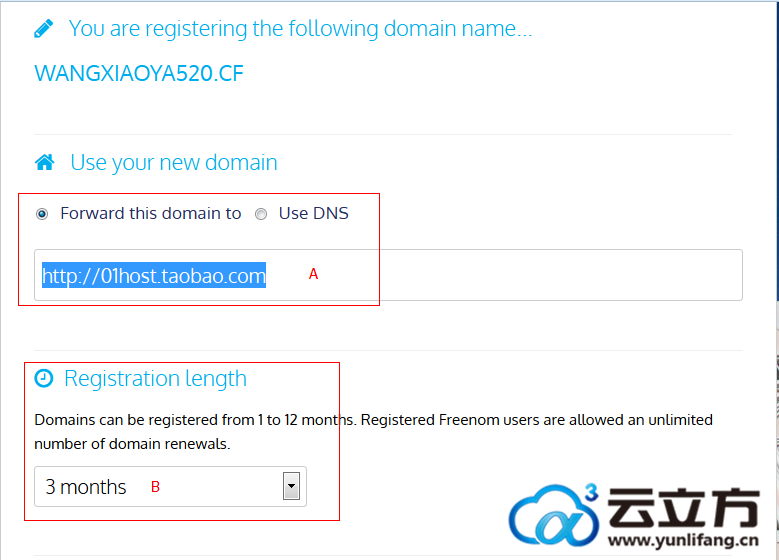 B:选择注册期限,最少3个月,最长12个月,建议大家根据自己的实际需求选择哈,避免浪费资源,人家免费提供给您使用的哦,要感谢它们的...