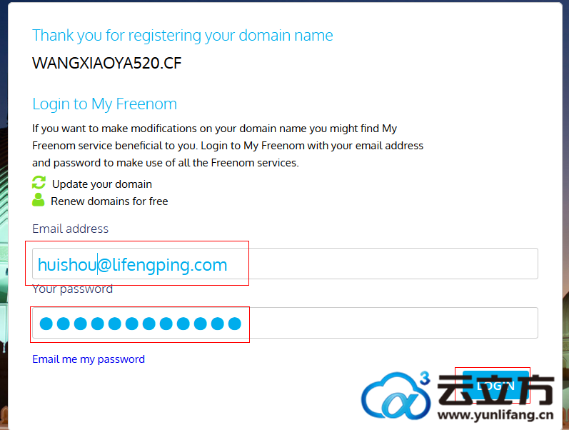 又让我们填写一次邮箱地址和密码,真的是有点麻烦了,不过我们需要免费使用他的服务,麻烦一点我们也是不怕的哈,输入完信息后,我们点击后面的“LOGIN”按钮进入下面的页面: